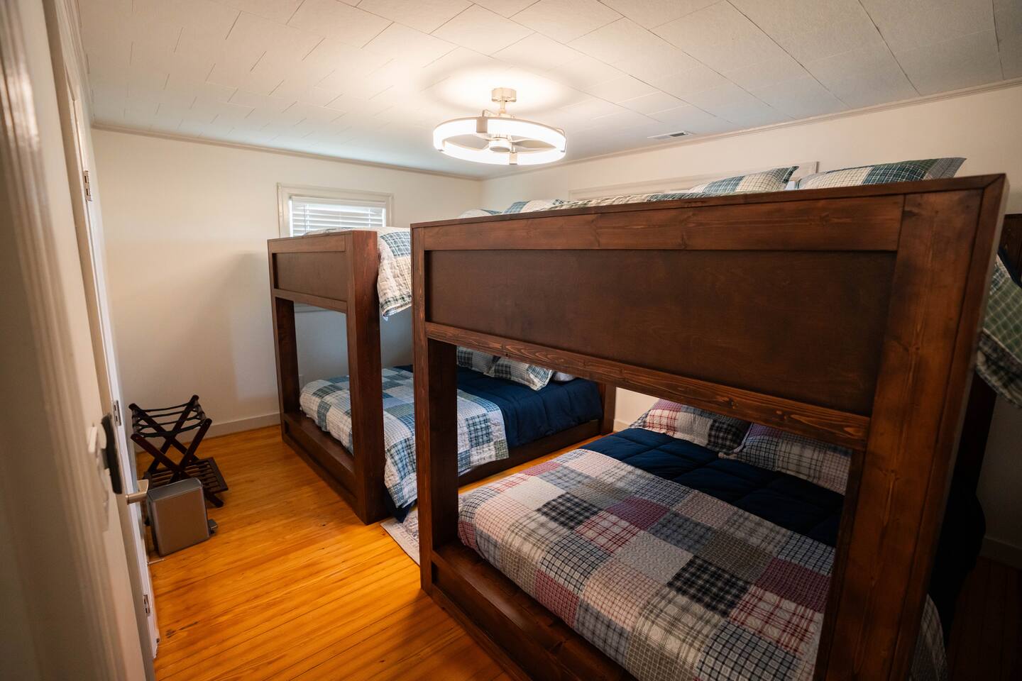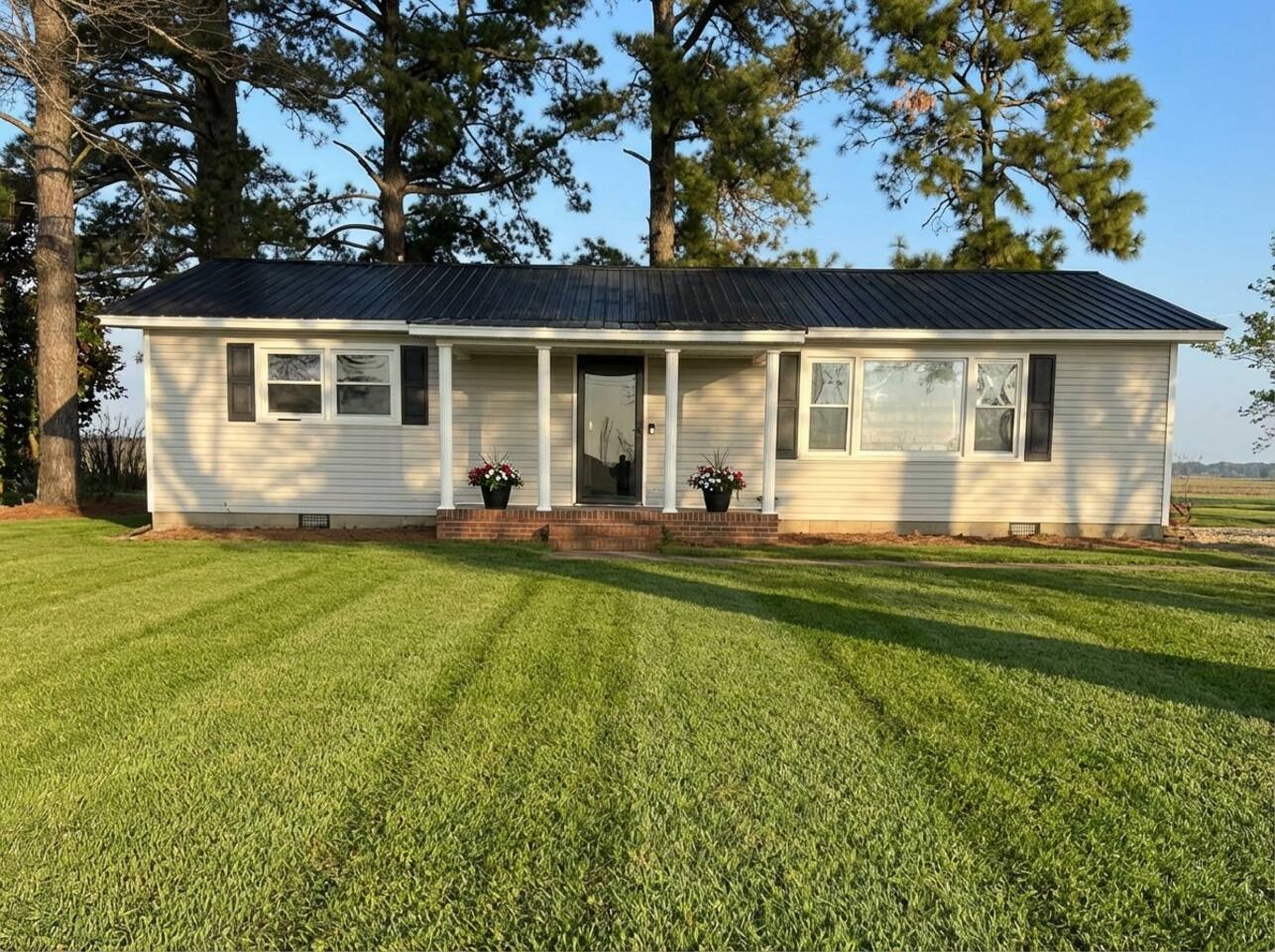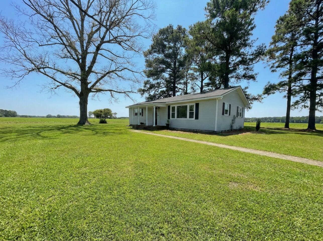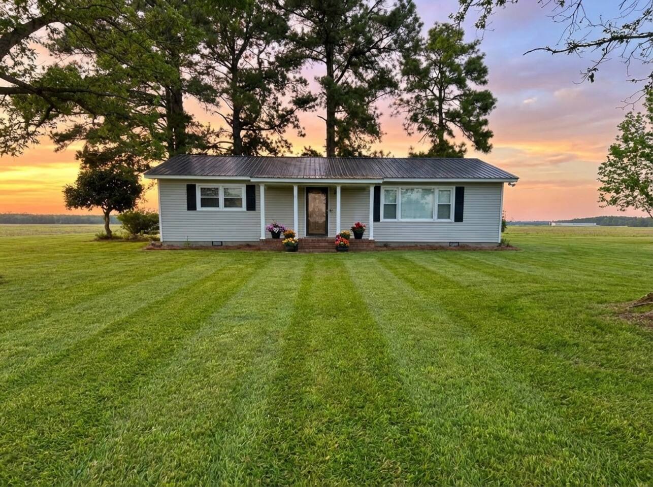 Wake up to wide-open farmland, working tractors, and real country quiet. This fully renovated 1950s ranch sits deep on 350 acres of active farm land—private, peaceful, and built solid. Once my grandpa’s home, it’s now a full-time short-term rental designed for families, travelers, and wedding guests. The Farm • Secluded on 350 acres with 3 ponds • Active working farm—watch tractors, irrigation & harvest • Long ¼-mile driveway = zero road noise • Fresh local well water • Turkey, NC—near Powell Comeback Farms • Piggly Wiggly 6 mi | Raleigh ~1 hr | Wilmington ~70 min The House (Single-Level Ranch) • Built in the 1950s, recently renovated & sturdy • 3 Bedrooms / 2 Full Baths • Master: King bed • Bedroom 1: Custom queen-over-queen wood bunk (very sturdy) • Bedroom 2: Custom queen-over-queen wood bunk (very sturdy) Living & Comfort • Living room with 2 leather couches + leather loveseat • Smart TV + fast fiber internet • Full-size washer & dryer Kitchen & Baths • Brand-new stainless steel appliances • Fully stocked kitchen • Bathroom 1: Tub + shower • Bathroom 2: Walk-in shower Book a real country escape—quiet, spacious, and built to last.
