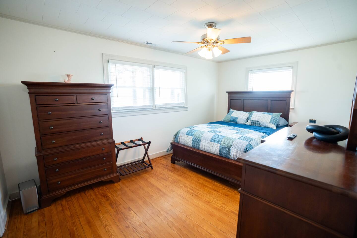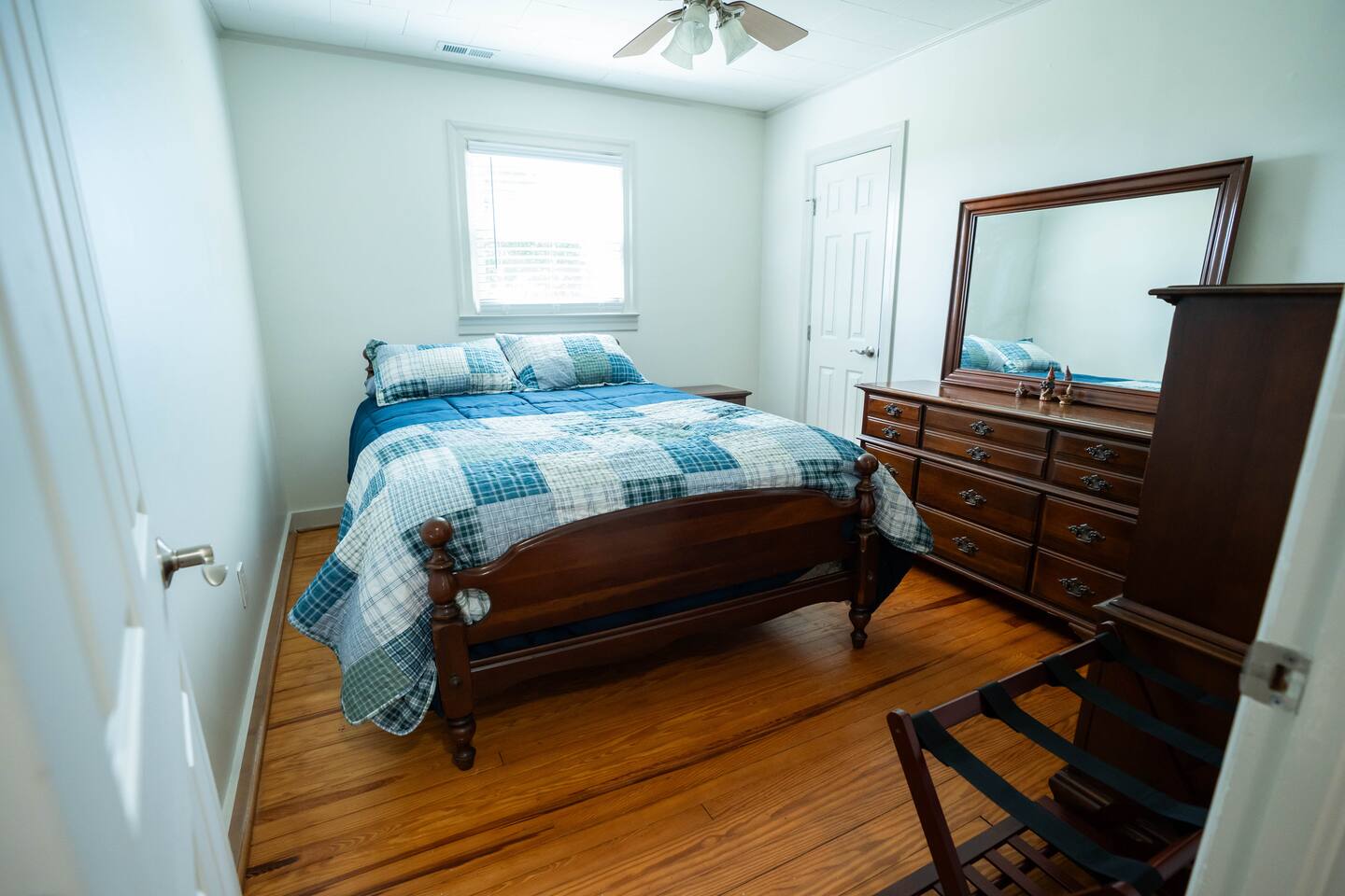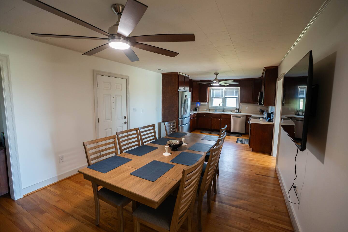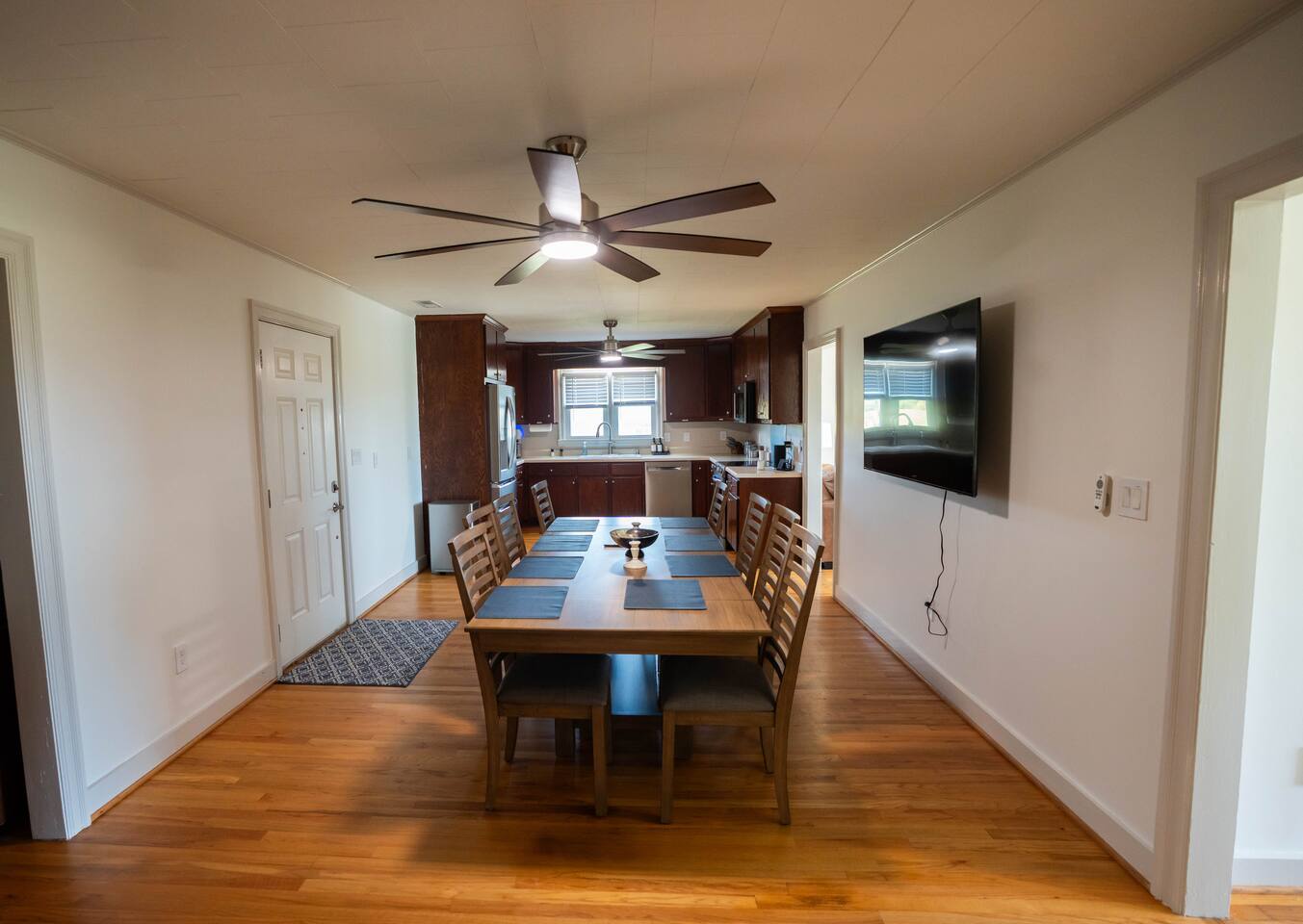 Wake up to wide-open farmland, working tractors, and real country quiet. This fully renovated 1950s ranch sits deep on 350 acres of active farm land—private, peaceful, and built solid. Once my grandpa’s home, it’s now a full-time short-term rental designed for families, travelers, and wedding guests. The Farm • Secluded on 350 acres with 3 ponds • Active working farm—watch tractors, irrigation & harvest • Long ¼-mile driveway = zero road noise • Fresh local well water • Turkey, NC—near Powell Comeback Farms • Piggly Wiggly 6 mi | Raleigh ~1 hr | Wilmington ~70 min The House (Single-Level Ranch) • Built in the 1950s, recently renovated & sturdy • 3 Bedrooms / 2 Full Baths • Master: King bed • Bedroom 1: Custom queen-over-queen wood bunk (very sturdy) • Bedroom 2: Custom queen-over-queen wood bunk (very sturdy) Living & Comfort • Living room with 2 leather couches + leather loveseat • Smart TV + fast fiber internet • Full-size washer & dryer Kitchen & Baths • Brand-new stainless steel appliances • Fully stocked kitchen • Bathroom 1: Tub + shower • Bathroom 2: Walk-in shower Book a real country escape—quiet, spacious, and built to last.